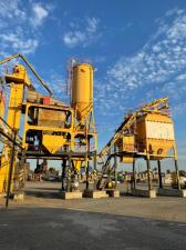 Тип агрегата – со смесителем периодического действия (Двухвальный, лопастной; масса одного замеса 730 кг). Предназначен для сортировки и дозирования на 4 фракции нагретых песка и щебня, дозирования битума, приготовления асфальтобетонной смеси и выгрузки ее непосредственно в автотранспорт или в скип агрегата готовой смеси. Дозирование всех компонентов осуществляется в дозаторах (тип дозаторов – весовые на тензодатчиках). В состав смесительного агрегата входят: элеватор каменных материалов (цепной, вертикальный, производительность до 55 т/час); верхний блок состоит из блока грохота (гирационный), бункера горячекаменных материалов (вместимость не менее 8,3 м3); нижний блок состоит из дозаторов каменных материалов, смесителя и бункера излишков.